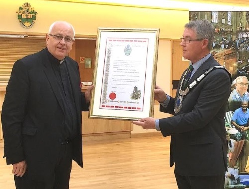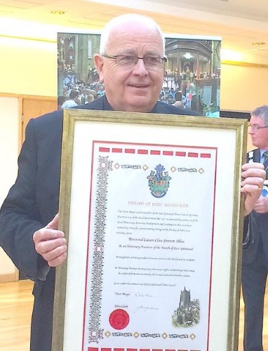 The Rev Clive Everett-Allen is presented with the Freedom of East Grinstead at his farewell reception