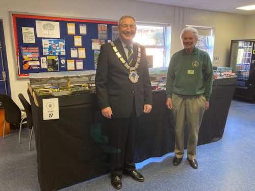 The Mayor had a great morning on Saturday at the East Grinstead Model Railway Club exhibition at Sackville School. Chatting to the stall holders and inspecting their layouts.
