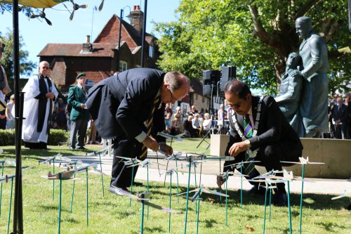 EAST GRINSTEAD Commemorated the Battle of Britain on Sunday 15th with a dedication to the McIndoe Memorial; followed by films and lectures at Chequer Mead. Later in the Day the Town Mayor hosted a Civic Service at St Swithun’s Church.