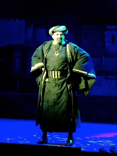 And a large and impressive scene it is, glittering with red and gold, as the tale of poor Aladdin’s hopeless love for Princess-in-hiding Suki unfolds.