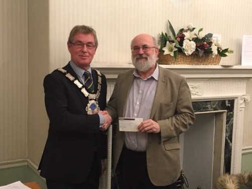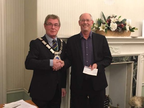 Town Mayor Cllr. Dick Sweatman, presented the current year’s Sports Grants cheques at Monday’s Council Meeting. Seen here among the recipients, were Rachel de Feu and Ray Davis on behalf of the Ashhurstwood Juniors Football Club, Ben Knight from Chartham Park Golf Club, Andy Hayes from the East Grinstead Cricket Club and Peter Brooks representing the Felbridge and Sunnyside Cricket Club. A grant was also made to Imberhorne School, who were unable to attend and the Town Mayor will be visiting them to present their cheque at a later date.