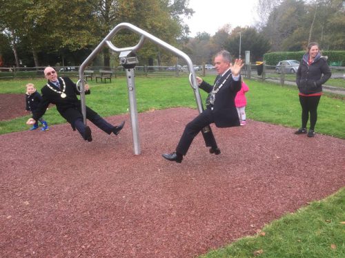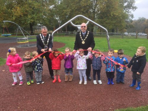 East Grinstead Town Mayor Bob Mainstone was on hand on Tuesday to declare the refurbished playground at East Court well and truly open. This very popular Town Council facility in the grounds of the East Court Estate has recently seen the equipment upgraded and the safety and accessibility enhanced. Bob Mainstone said “I am delighted that our local children will have another exciting activity to play on at the Town Council playground at East Court.