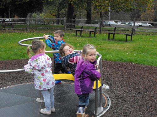 The project was overseen by Alison Merricks, the Town Council’s Estate Manager, who said. ”We have a rolling programme to keep this sort of equipment up to date, and wherever possible we try and ensure that the highest level of safety is matched by enabling as many children as possible to enjoy the playground. ” The first users to test out the playground came from the nearby All Kids Day Nursery housed at the nearby Old Court House.